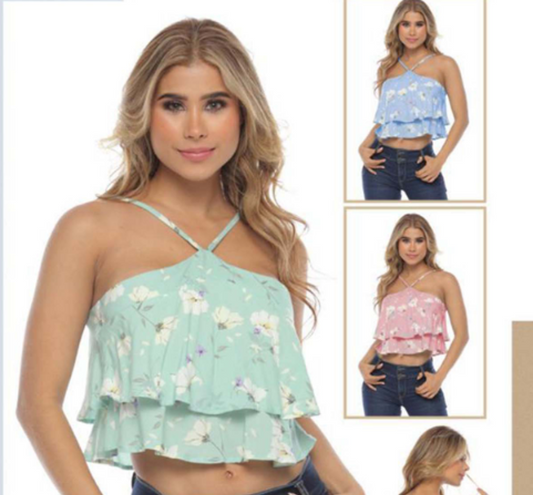 Tiered Cross Heart Floral Crop Top