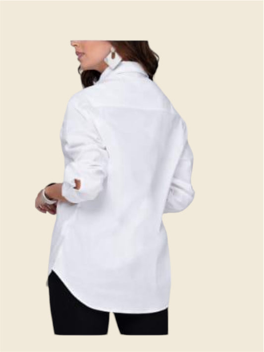 Platinum Satin Button-Down Collared Blouse