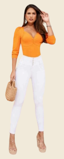 Stretch Jeans High Waisted with Gold Bronze on Back Pocket