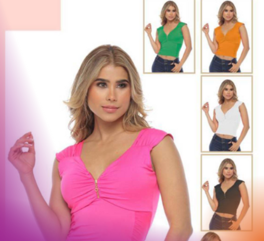 Stretch Blouse with Gold Front Zipper