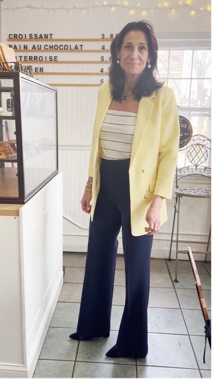 - Pair with a blouse and tailored pants for a chic, professional work outfit.