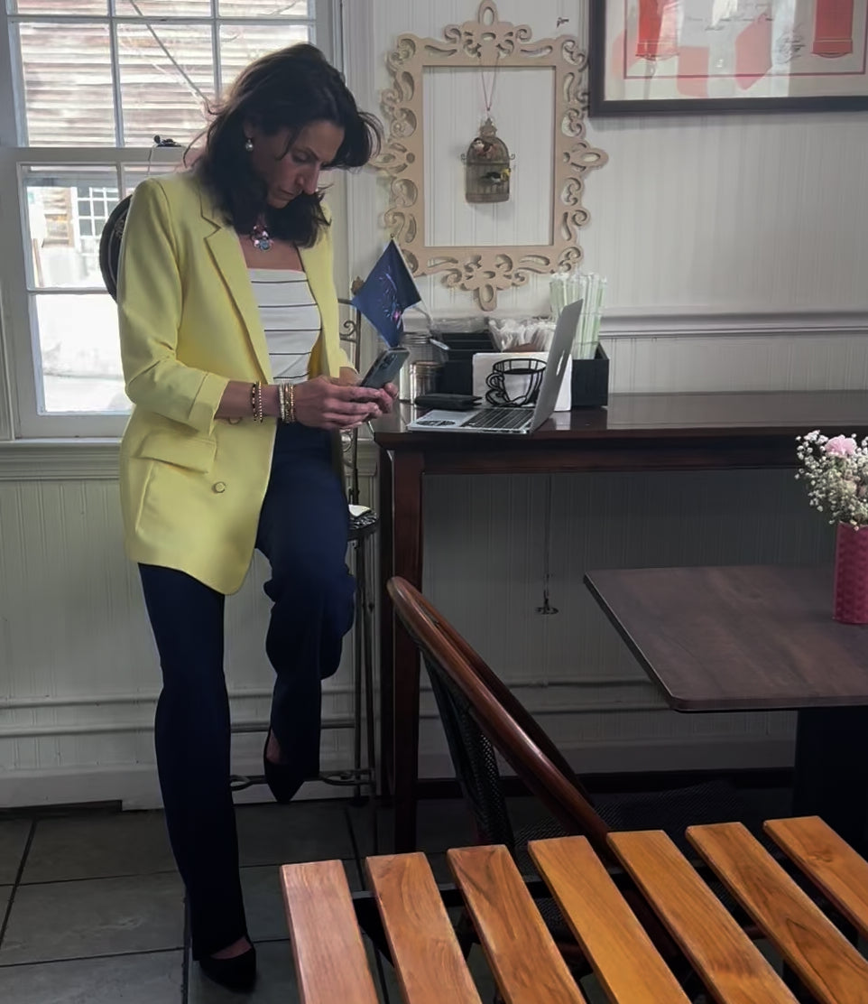 - Layer over a dress with heels for semi-formal occasions like meetings or business events.